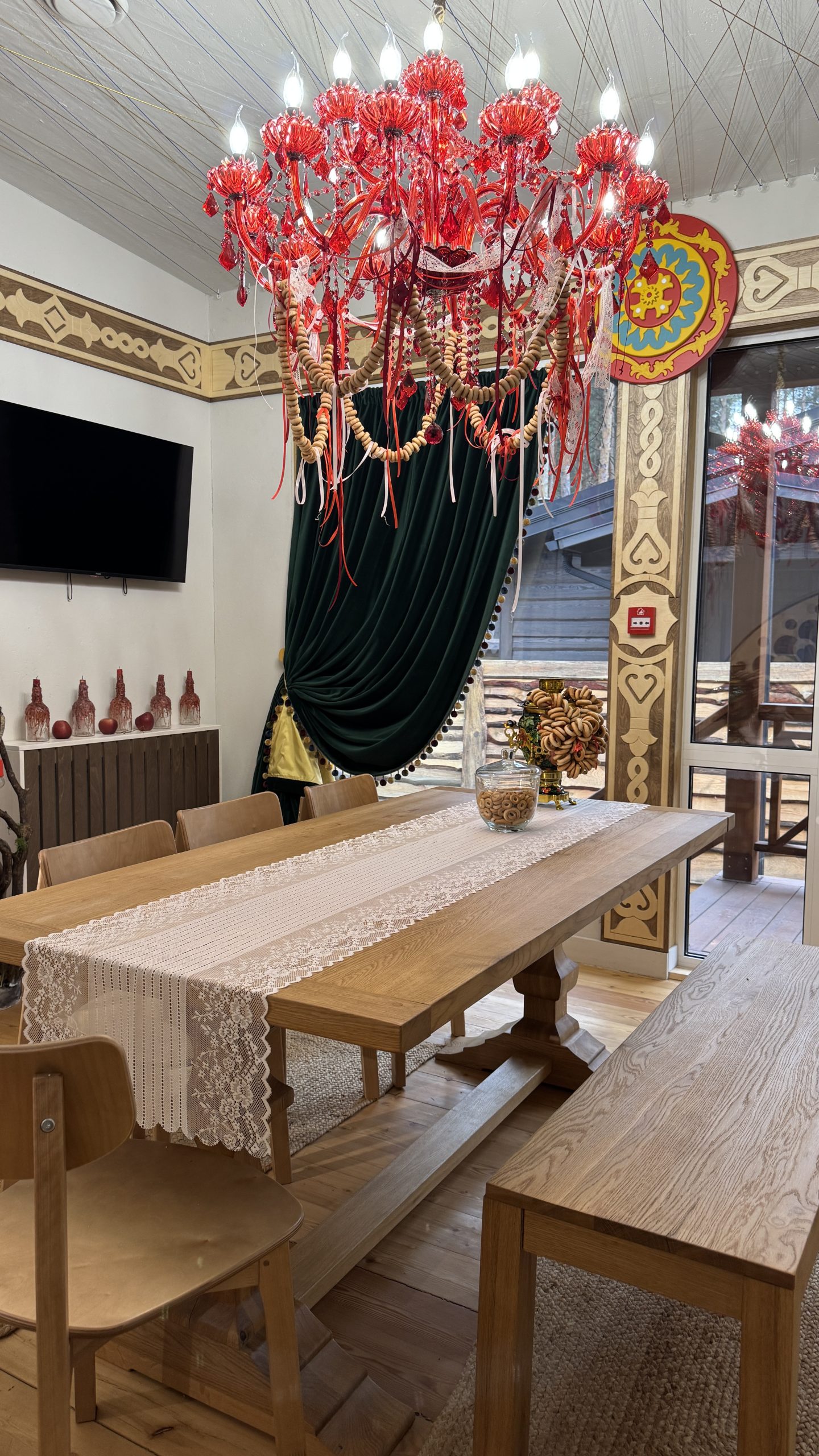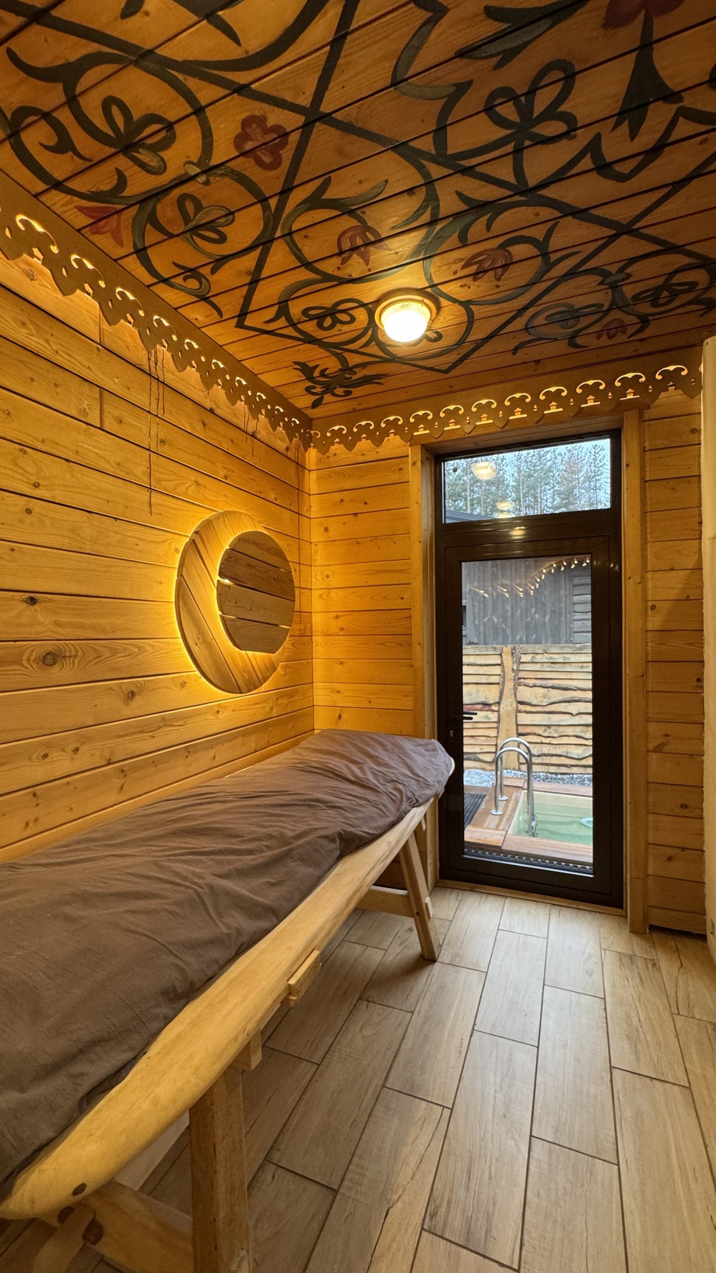 Светлая русская баня, созданная по мотивам одноименной сказки. Атмосфера сказки с первых минут бережно погружает гостей в состояние радости, а вкусный пар расслабляет и провожает в спокойствие и умиротворение. Теплота окутает вас около дровяной печи ароматным паром, в расслабляющем горячем чане- живой водой с травами, а за столом — свежезаваренным чаем.