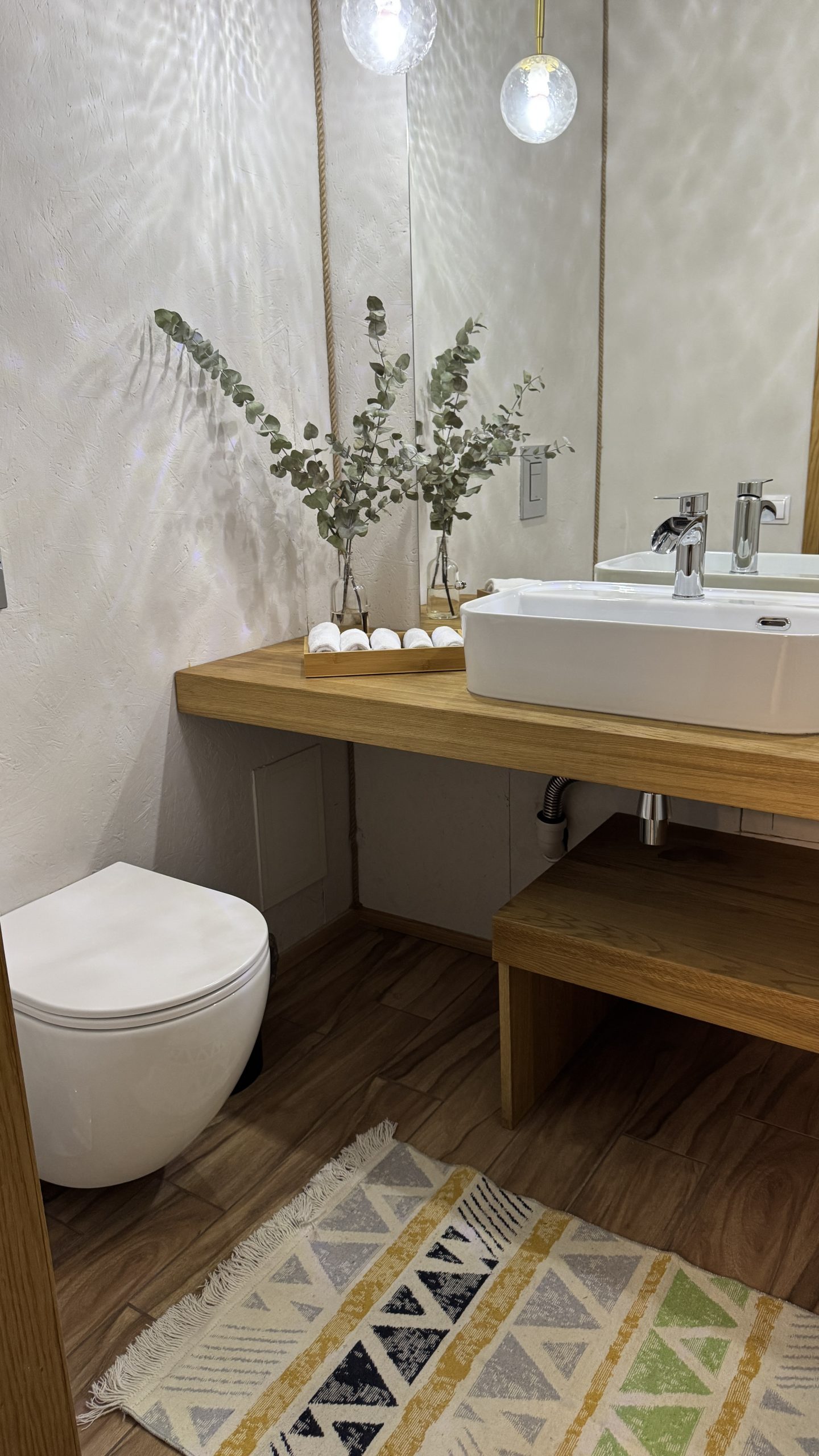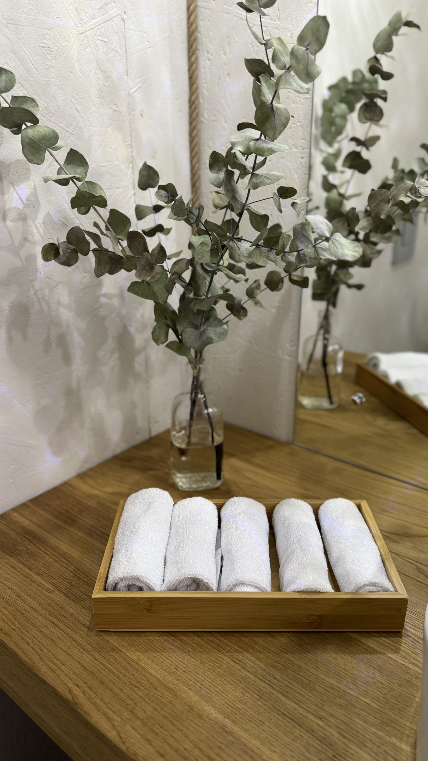 В бане есть всё необходимое для комфортного отдыха: тапочки, халат, шапка, простынь, полотенце, мыльные принадлежности + согревающий напиток.