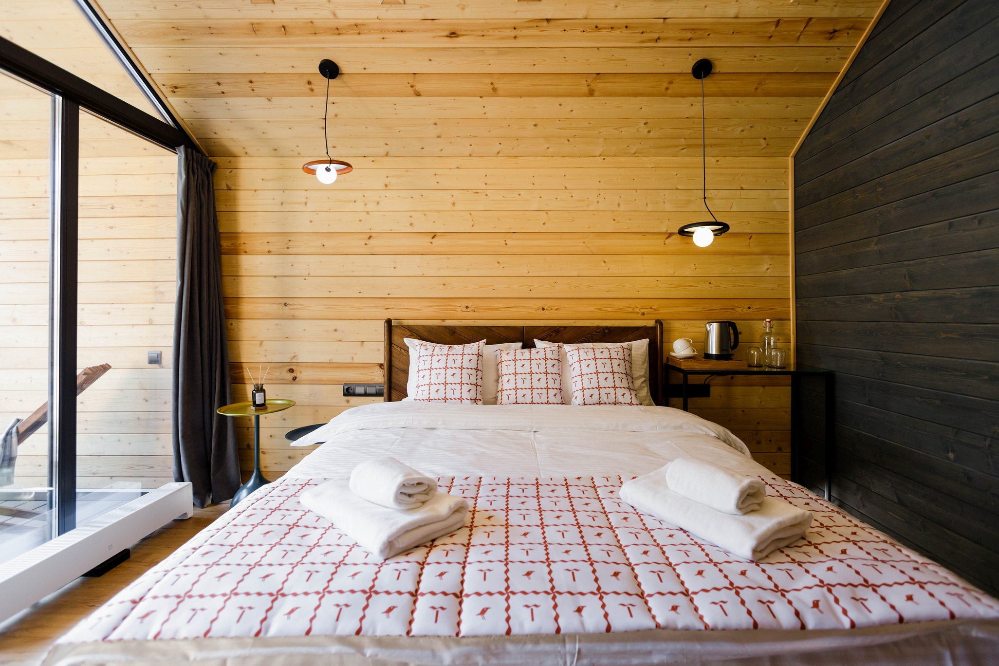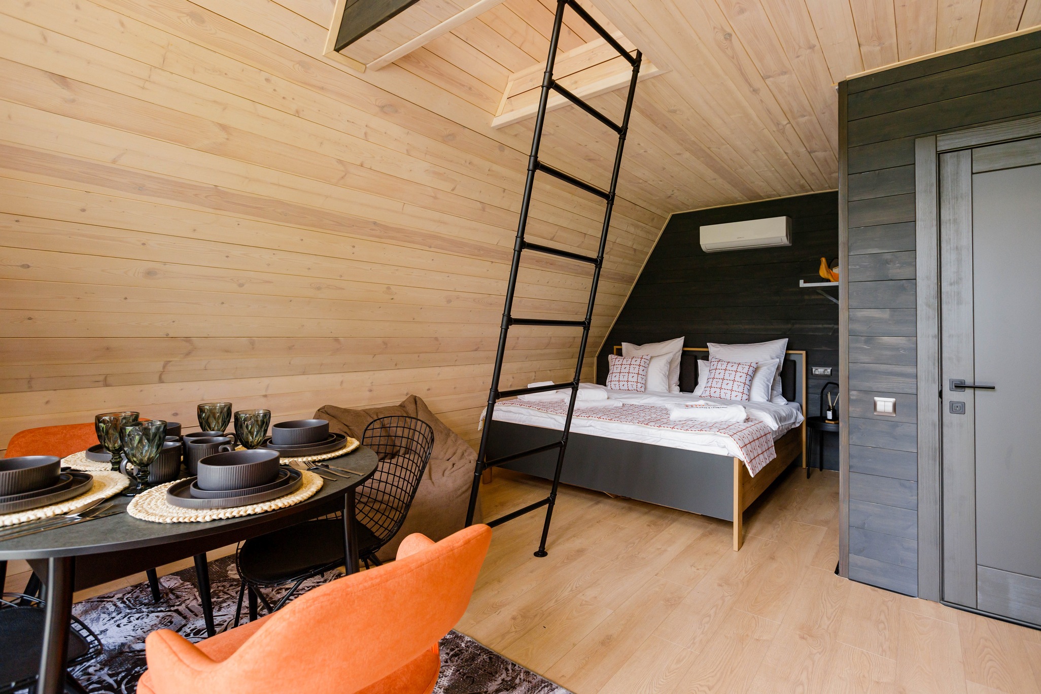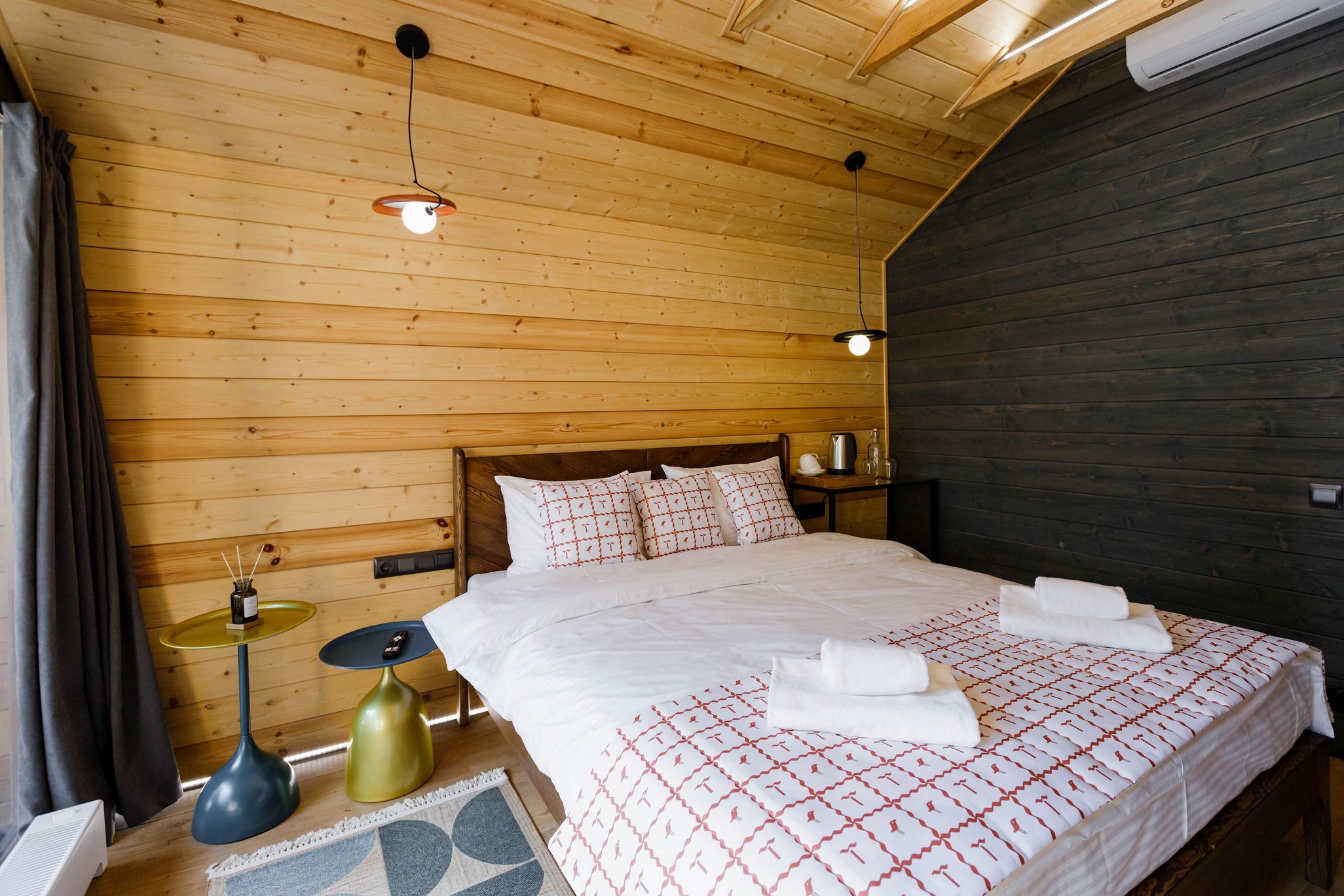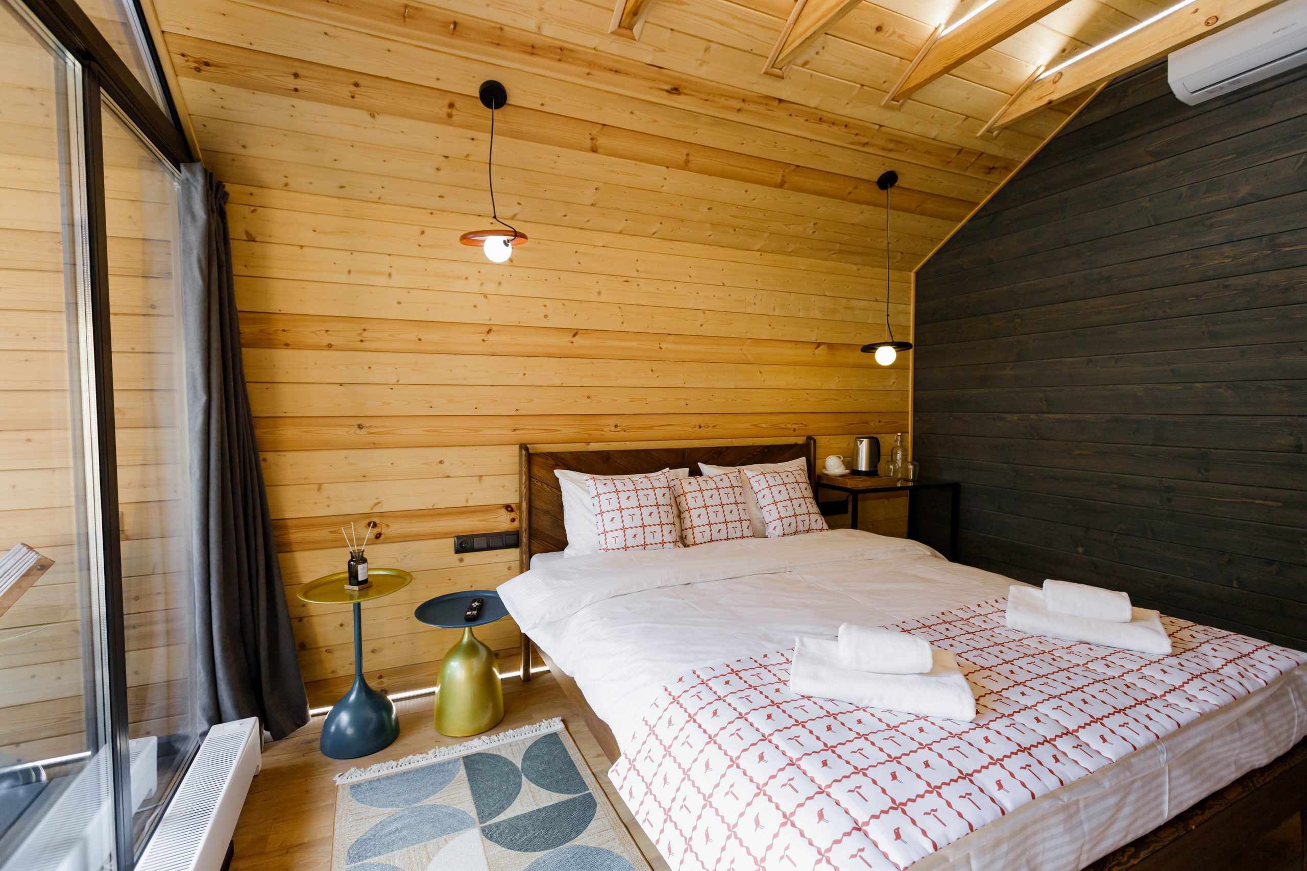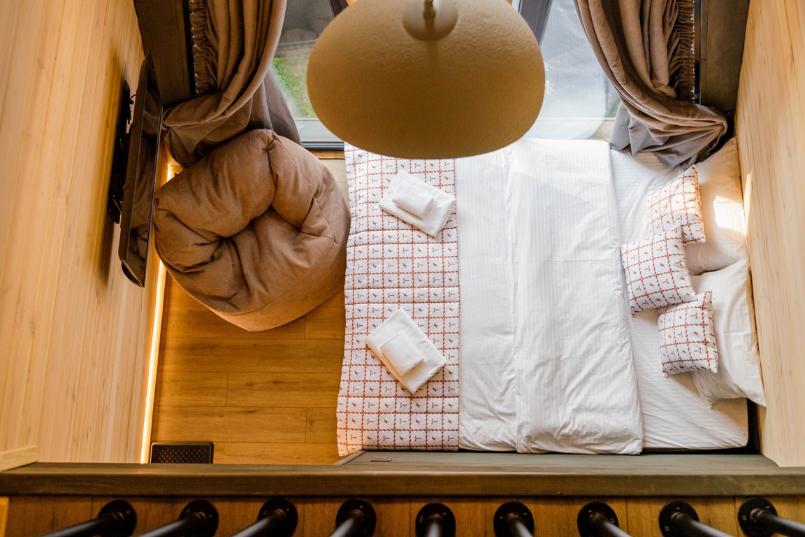 Уютный барнхаус площадью 26 кв.м., выполненный в теплых, натуральных тонах, которые создают атмосферу спокойствия и гармонии с природой. Идеальный выбор для романтического отпуска или уединенного отдыха для двух человек.