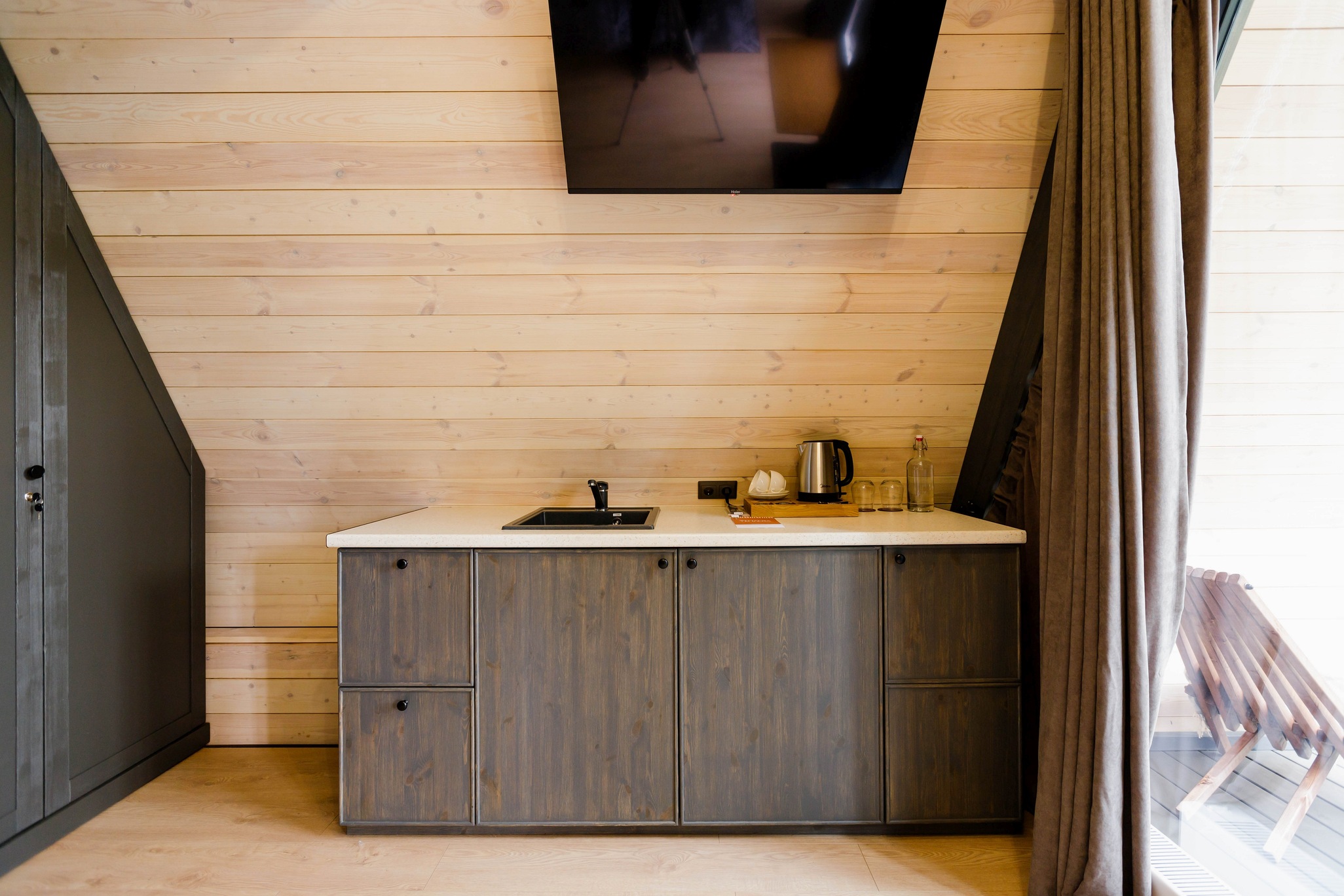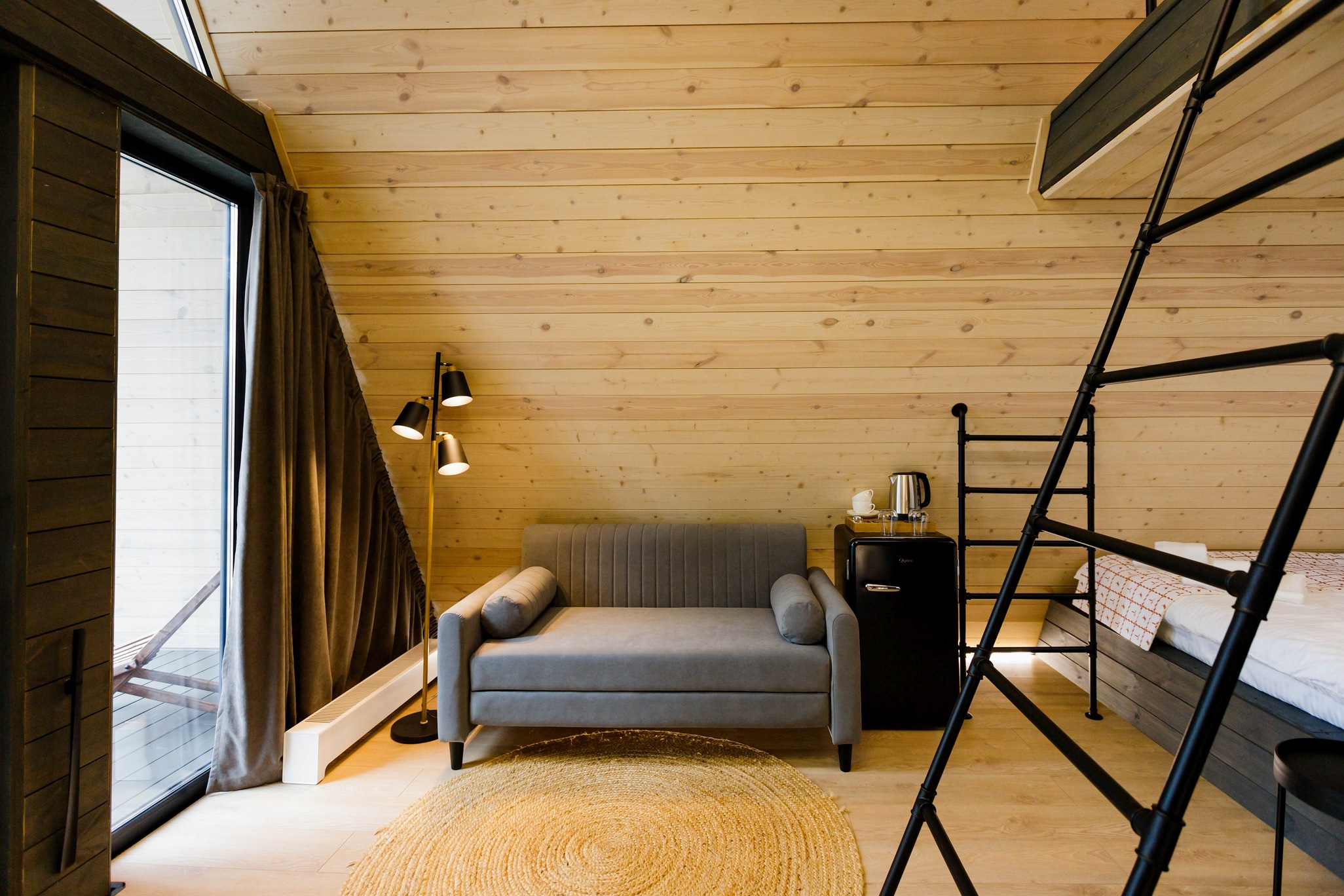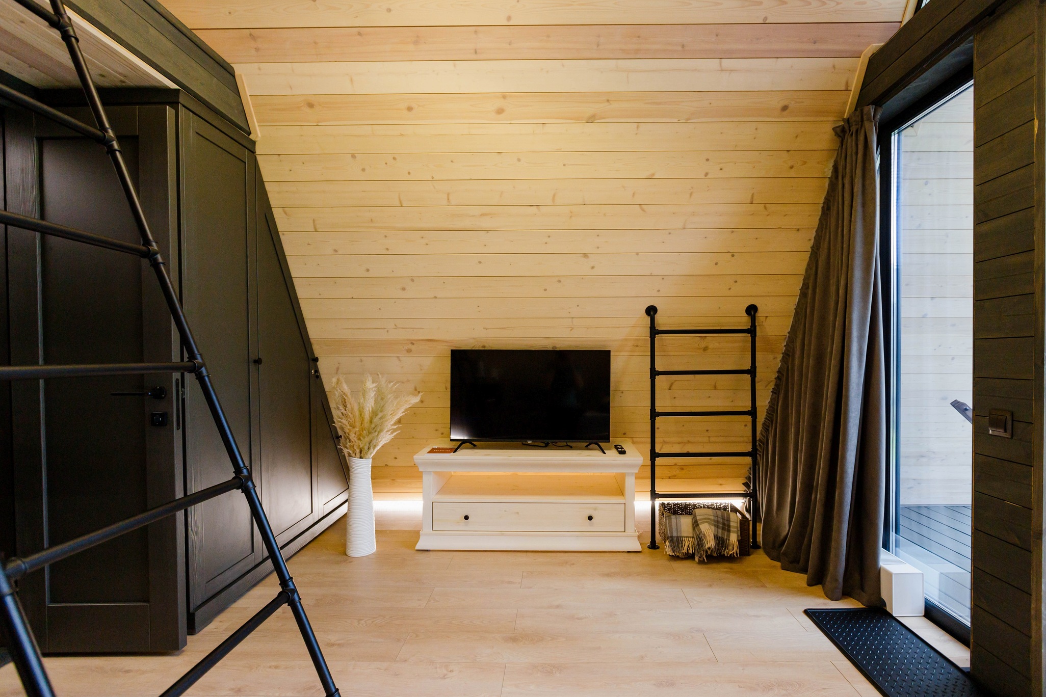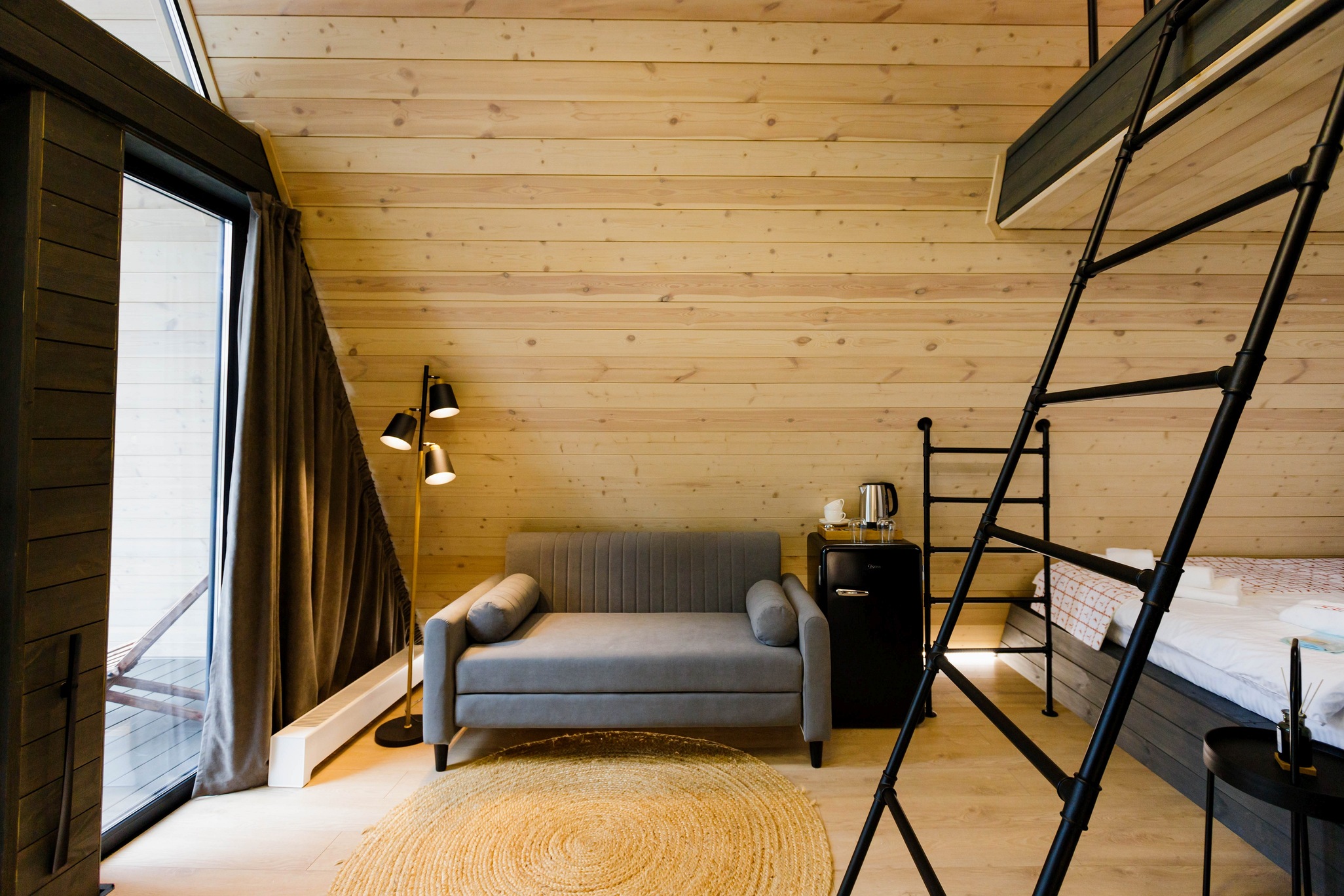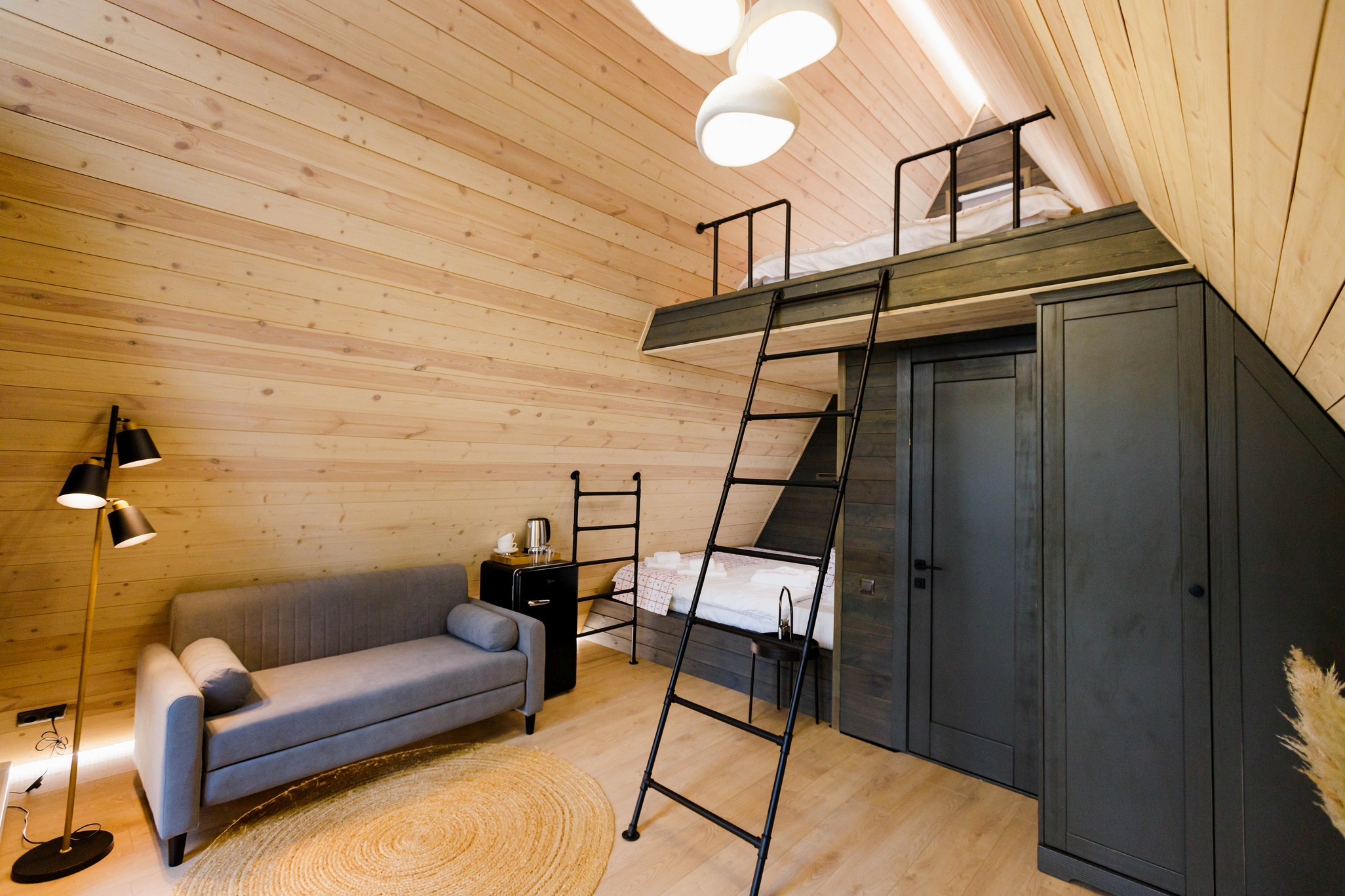 Уютный барнхаус площадью 26 кв.м., выполненный в теплых, натуральных тонах, которые создают атмосферу спокойствия и гармонии с природой. Идеальный выбор для романтического отпуска или уединенного отдыха для двух человек.