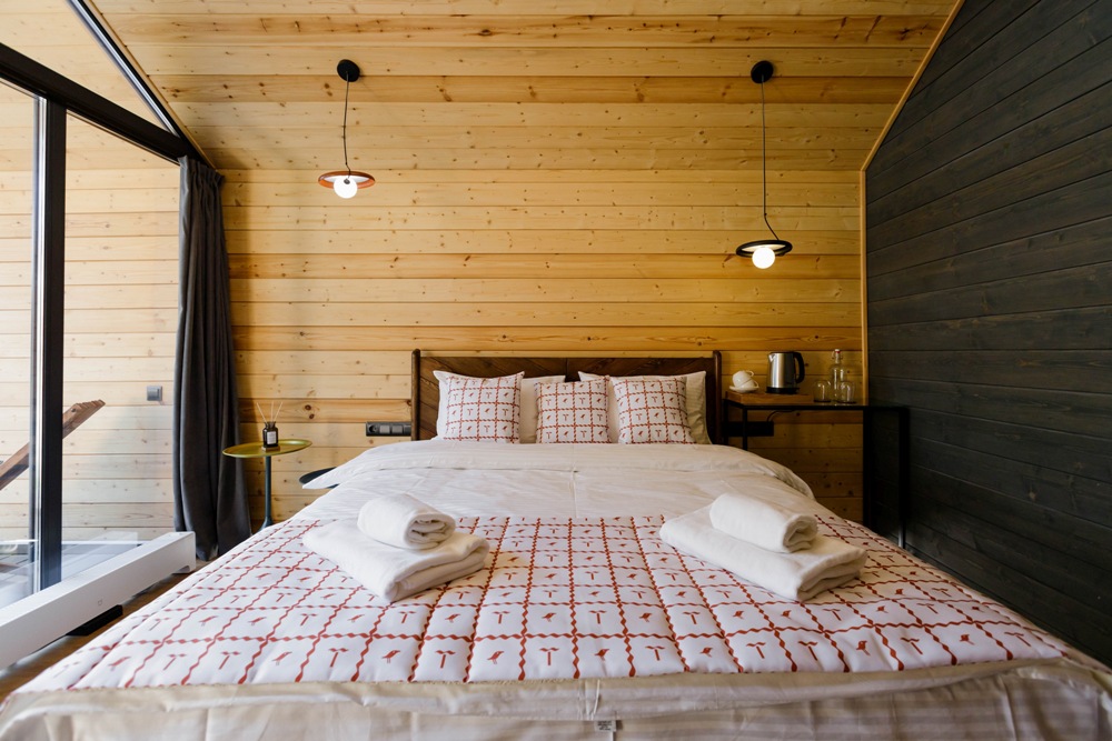 Наши домики являются воплощением гармонии и уюта. Используя только экологически чистые материалы, мы создали не просто место для ночлега, но истинное убежище для души.